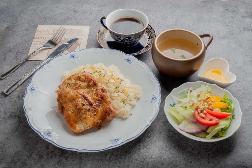チキン・ライス・サラダ・スープ・ドリンク付き - 花のキッシュランチセット