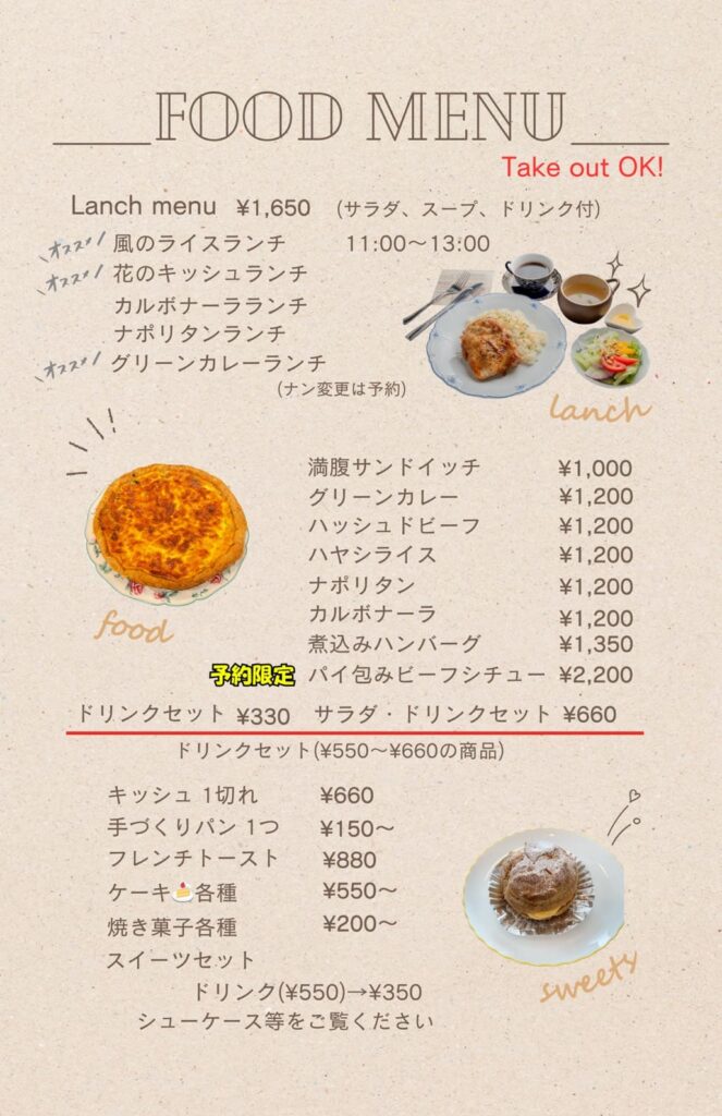 素材や手づくりにこだわったランチは、一口食べるだけで心も身体もほっとする優しい味。テイクアウトでのご利用も可能です。