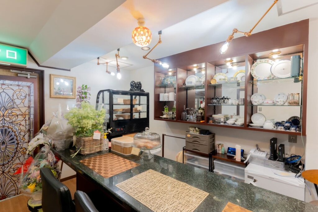 アトリエ風ノ音がプロデュースした手づくり喫茶「風花」は、アンティーク調の装飾と時計や歯車、ステンドグラスが